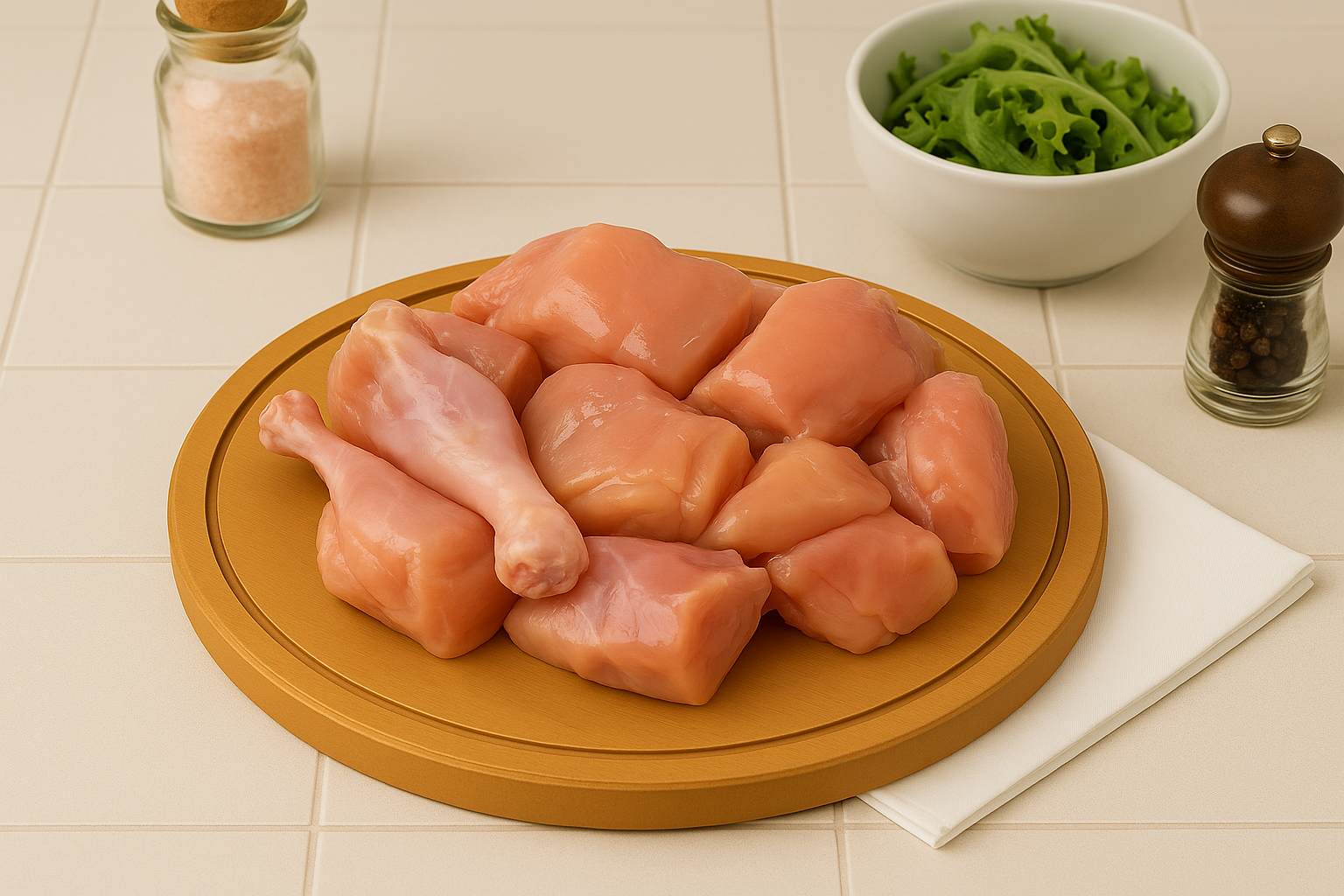These are bone-in pieces specially cut from the leg and thigh portions to bring out rich flavor and tenderness when slow-cooked in biryani. Cleaned, hygienically packed, and ready to cook — no extra prep needed.